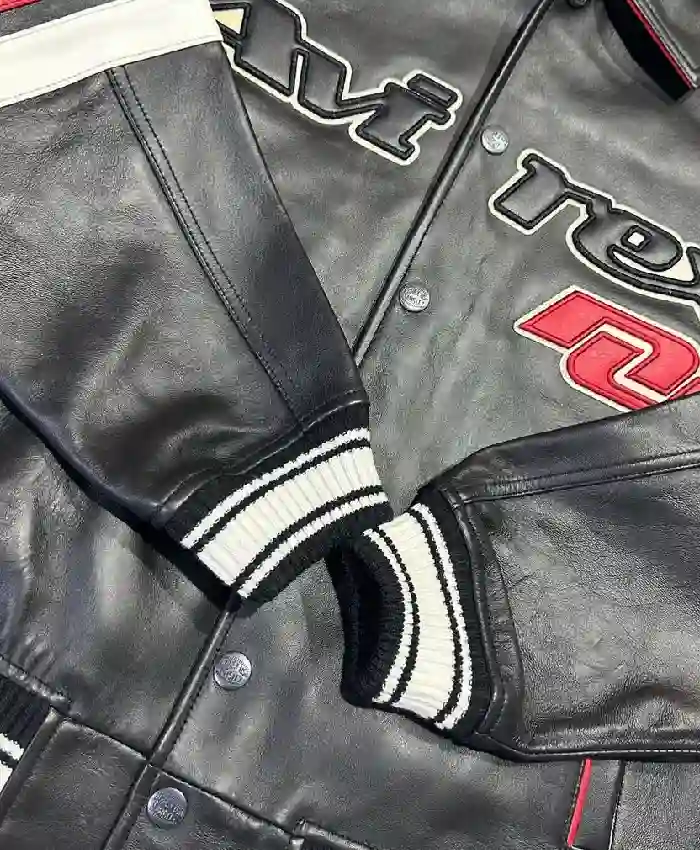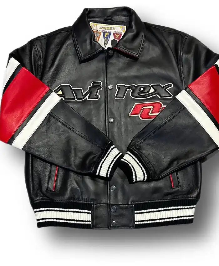 Avirex Legend Black and Red Bomber Leather Jacket For Men and Women