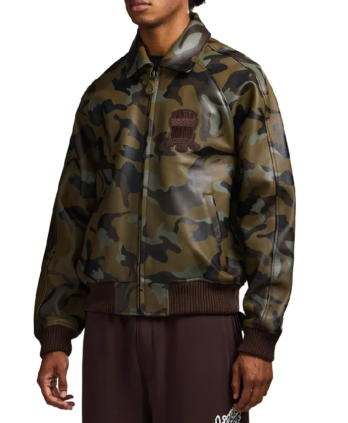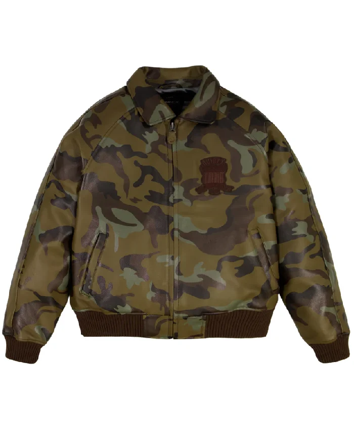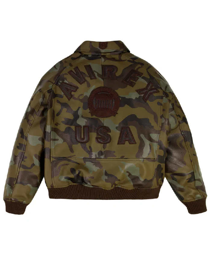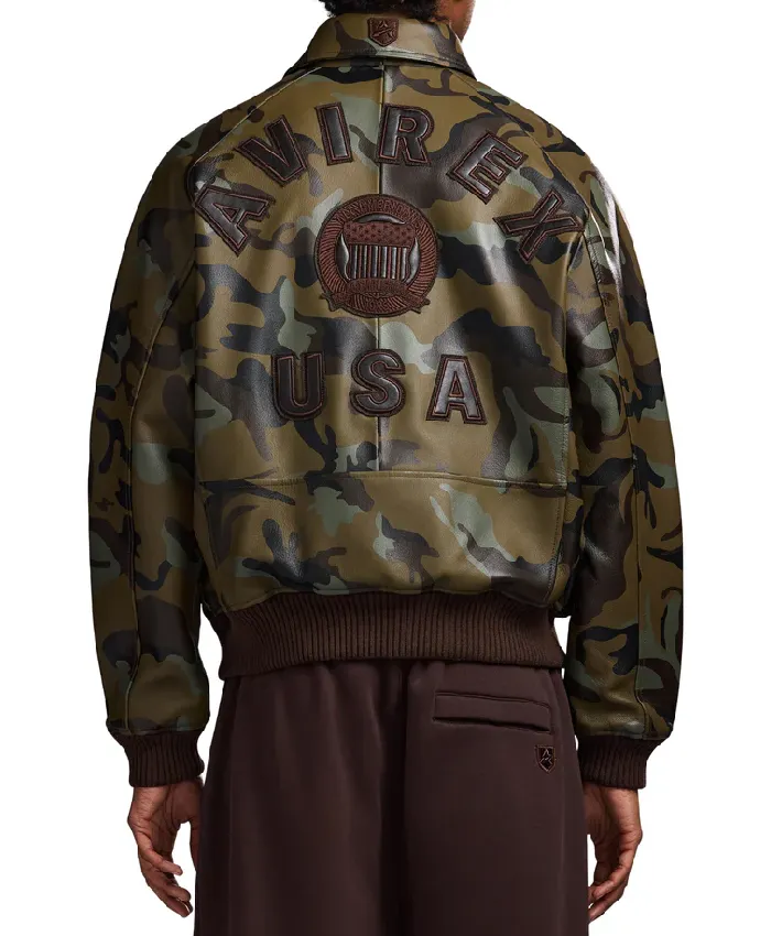 Avirex Limited Edition Camo Icon Bomber Leather Jacket For Men and Women