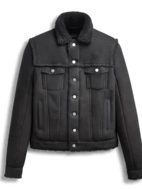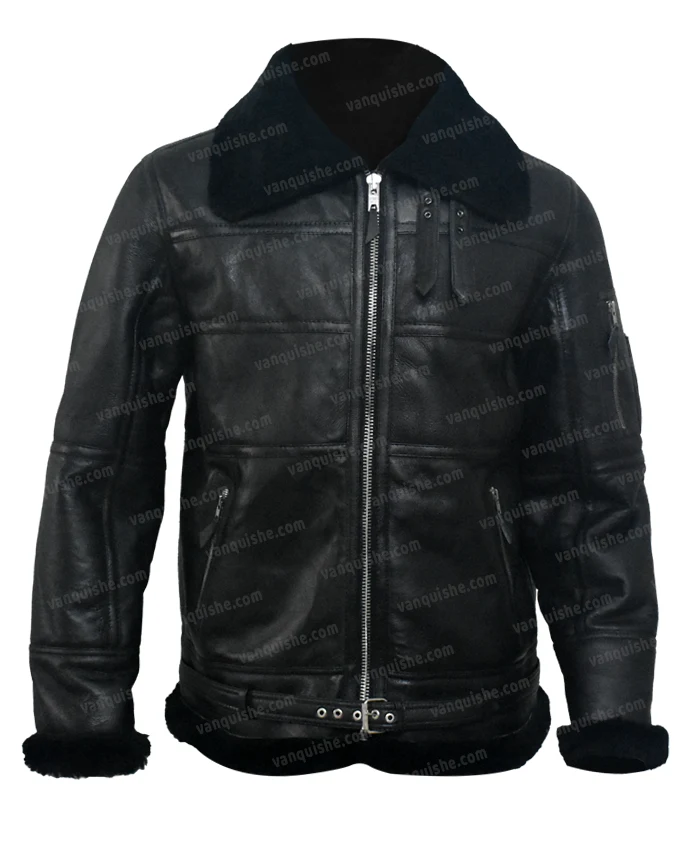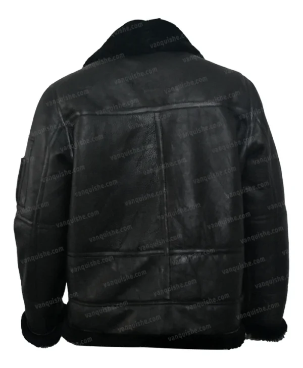 B16 Aviator Shearling Fur Black Sheepskin Leather Jacket