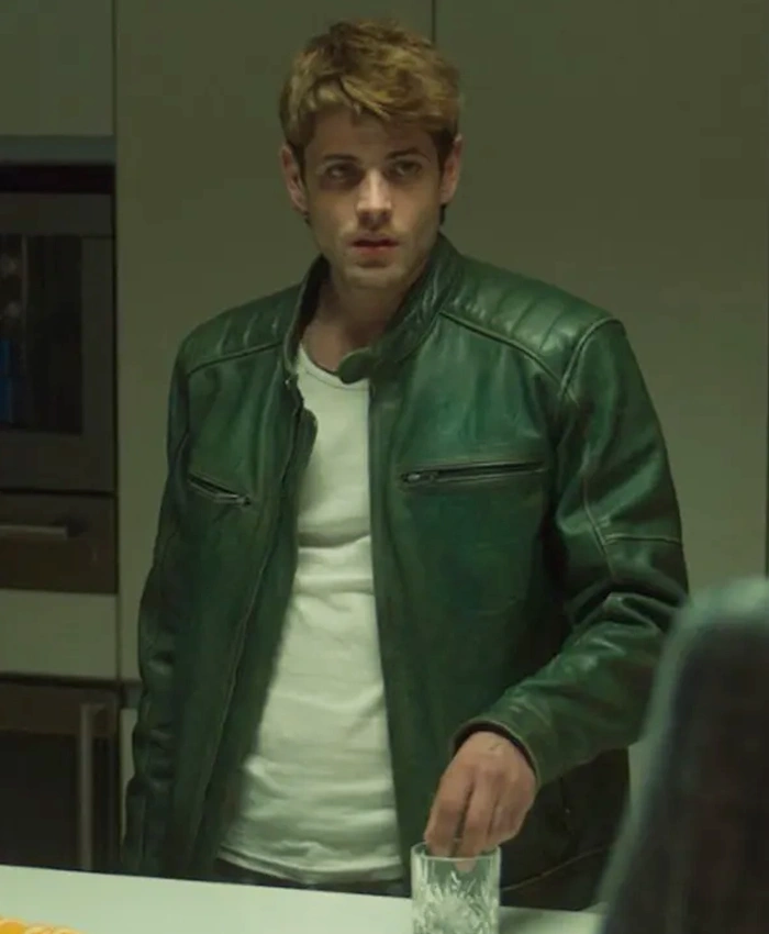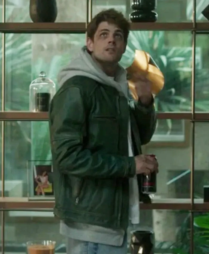 Alberto Olmo Movie Bad Influence 2025 Eros Green Leather Jacket