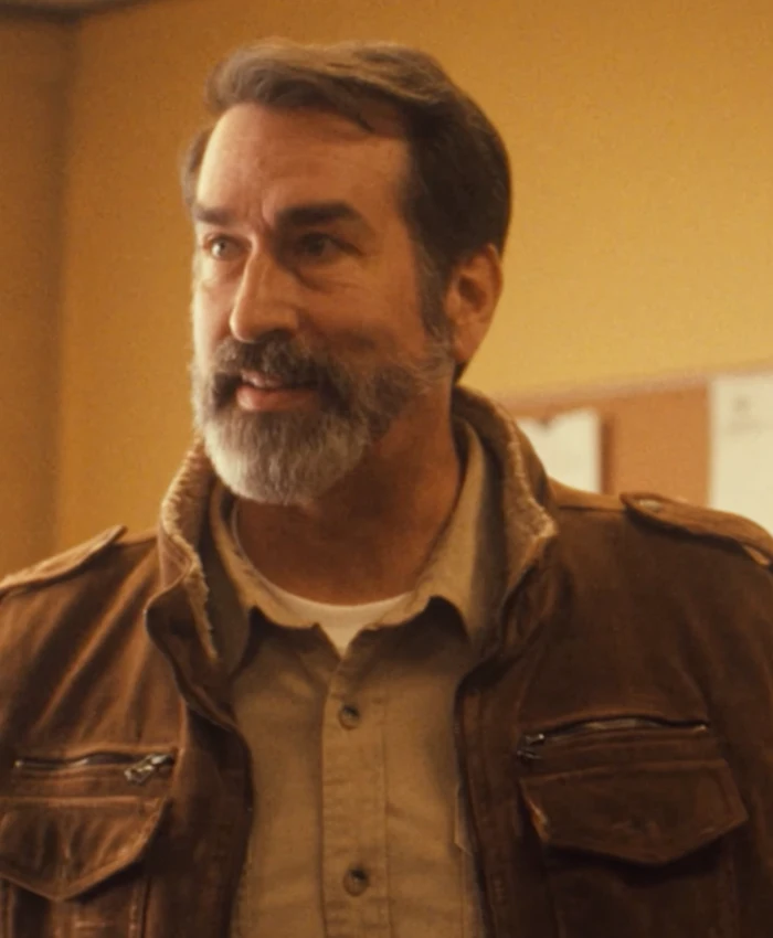 Rob Riggle Movie Bad Man 2025 Chief Sandy Brown Suede Leather Jacket