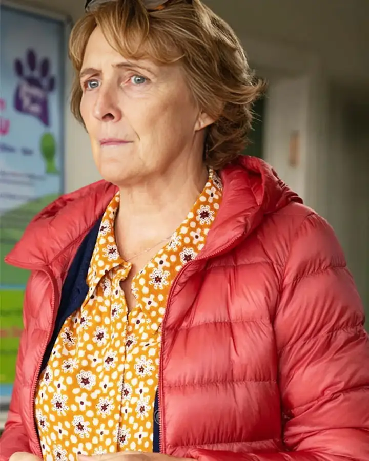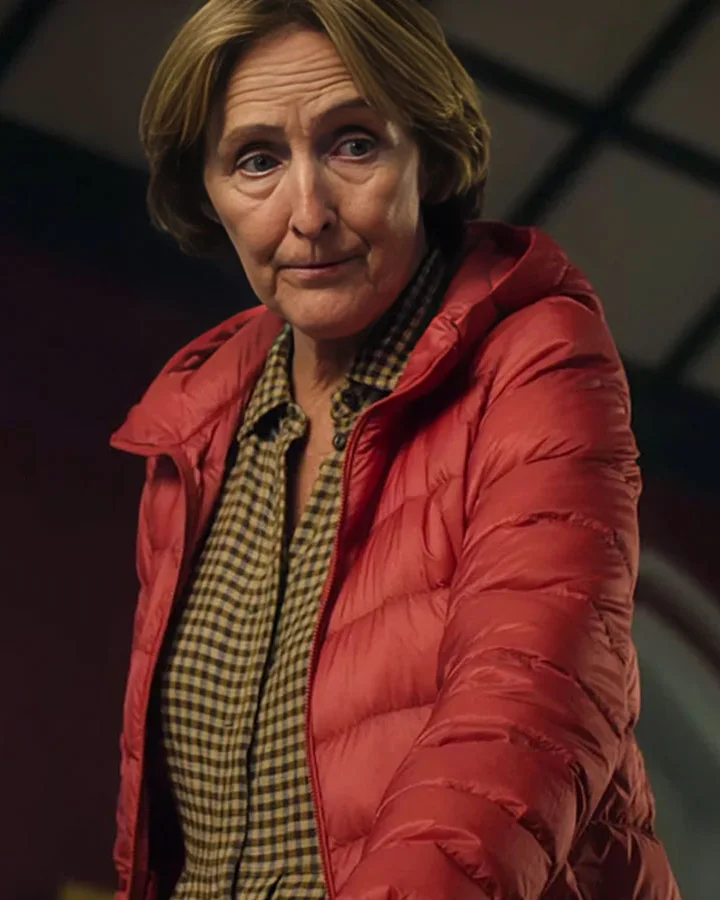 Fiona Shaw TV-Series Bad Sisters Season 02 Red Puffer Hooded Jacket