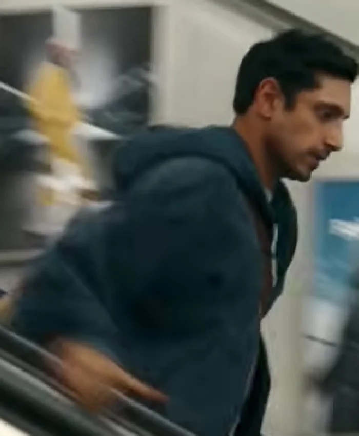 Riz Ahmed TV Series Bait 2026 Shah Latif Blue Hooded Denim Jacket For Men