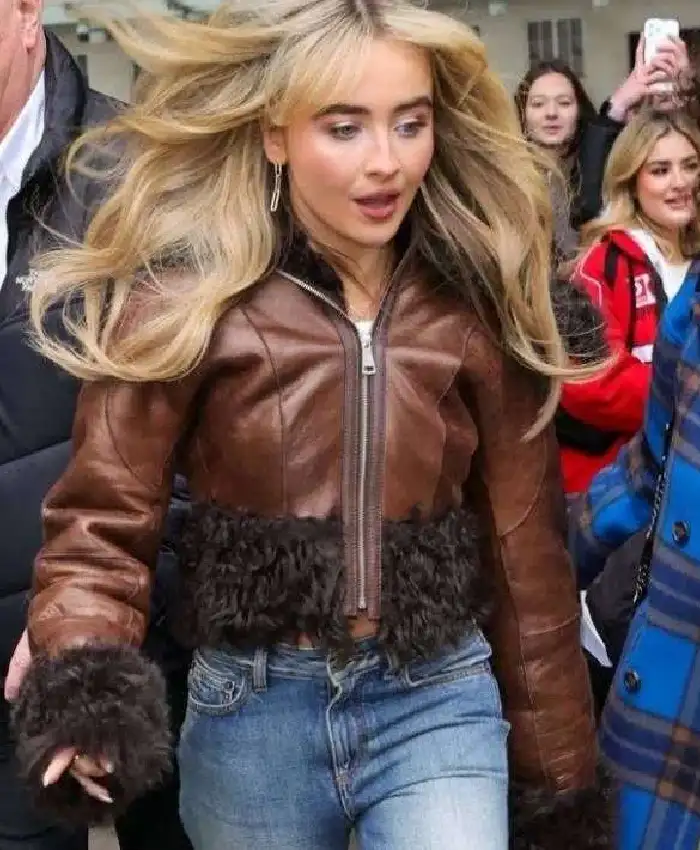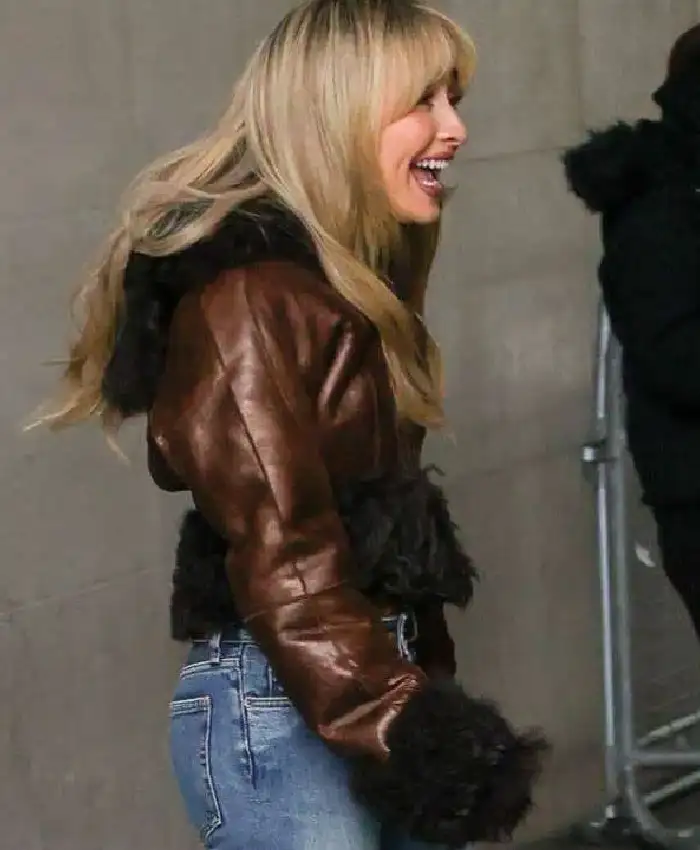 Sabrina Carpenter BBC Radio 1 2024 Brown Shearling Leather Jacket For Women