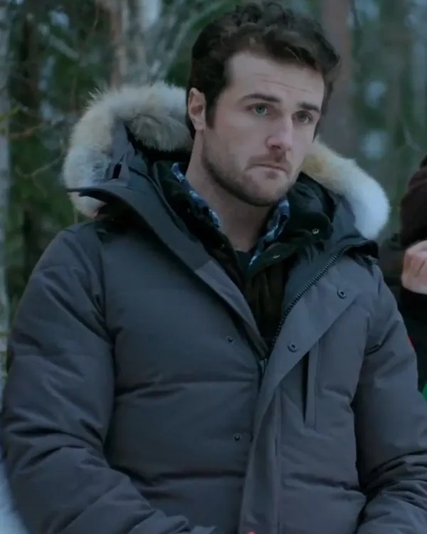 Cole Olsen Movie The Finnish Line 2024 Beau Mirchoff Grey Shearling Hooded Jacket