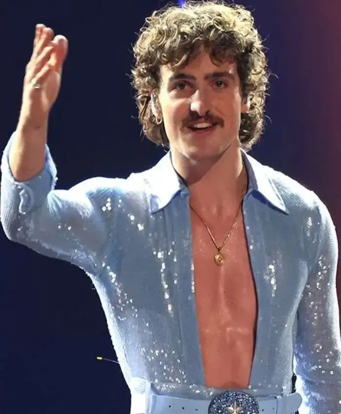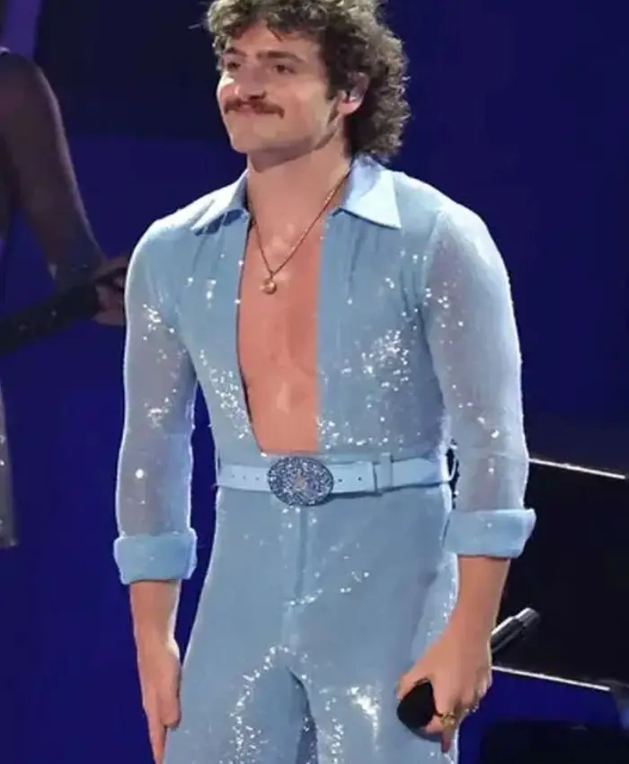 Benson Boone Celebrity 2025 Benson Boone Outfit Blue Sequin Jumpsuit For Men’s