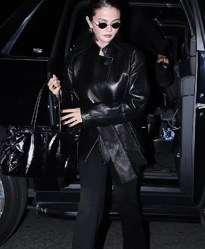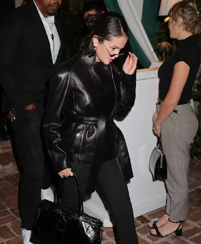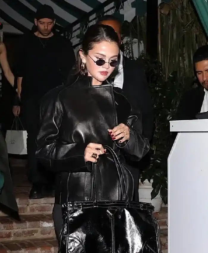 Selena Gomez Attends Brooks Nader’s birthday party Black Leather Jacket For Women