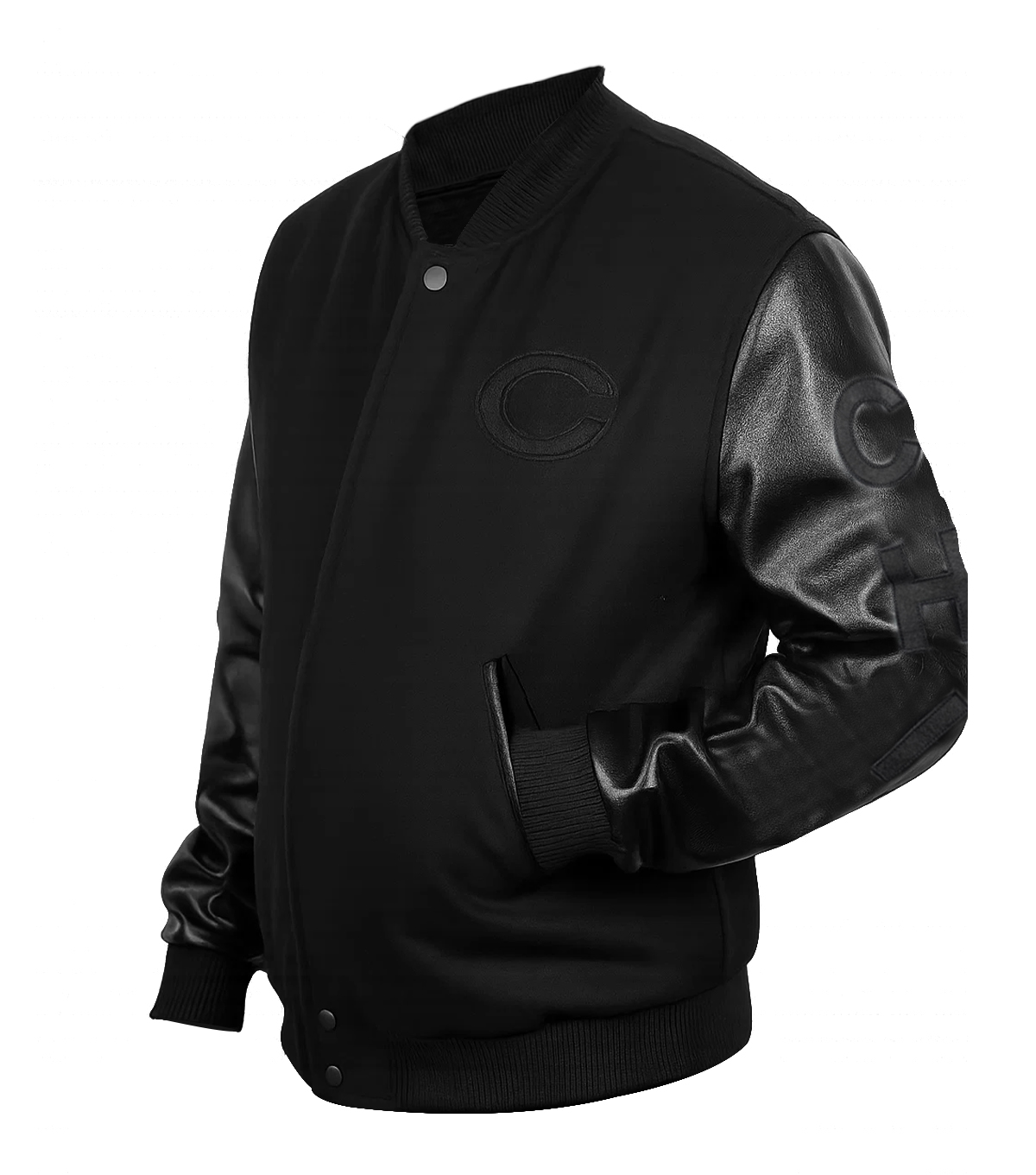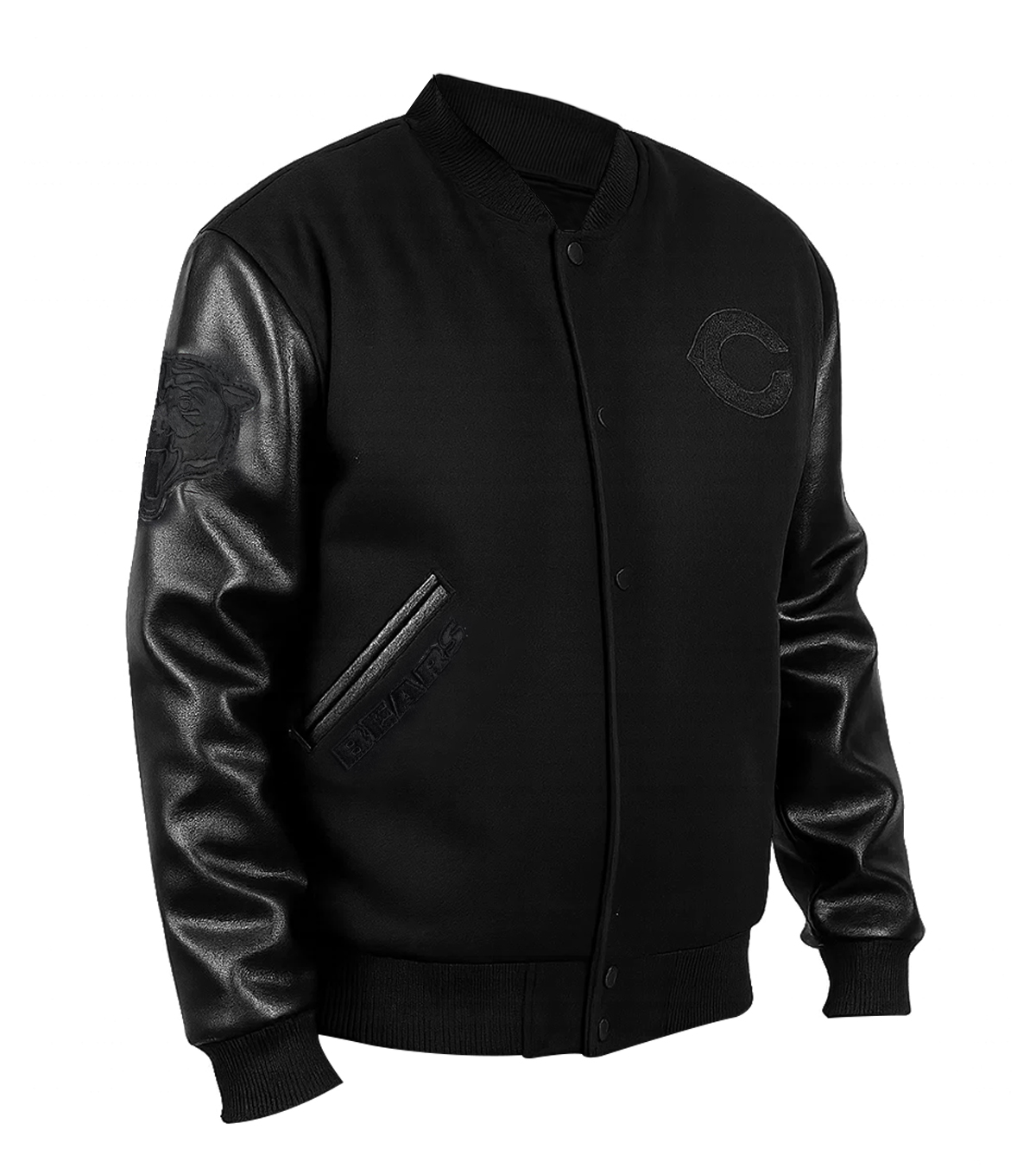Unisex Black Chicago Bears Logo Varsity Bomber Jacket