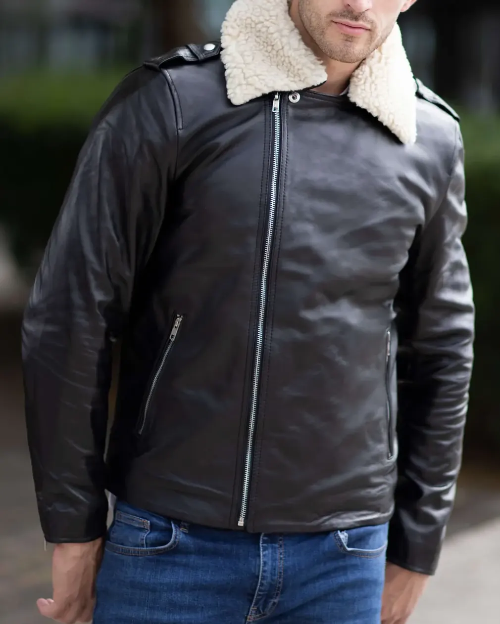 Order Stylish Black Mens Leather Flight Jacket With Fur Collar For Sale Men And Women