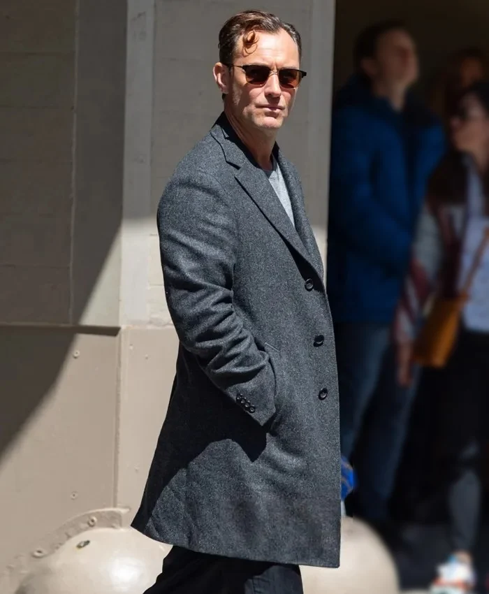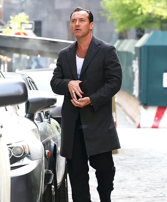 Jude Law TV-Series Black Rabbit 2025 Jake Friedken Grey Wool Coat