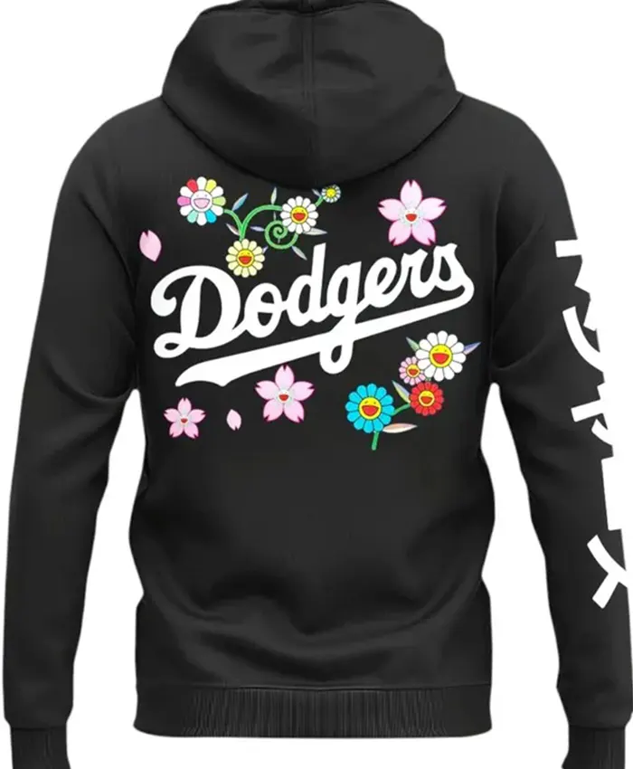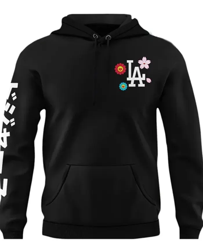 Takashi Murakami LA Dodgers 2025 Floral Black Fleece Hoodie For Mens