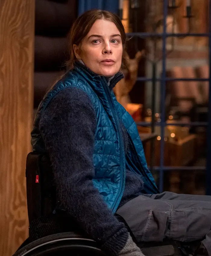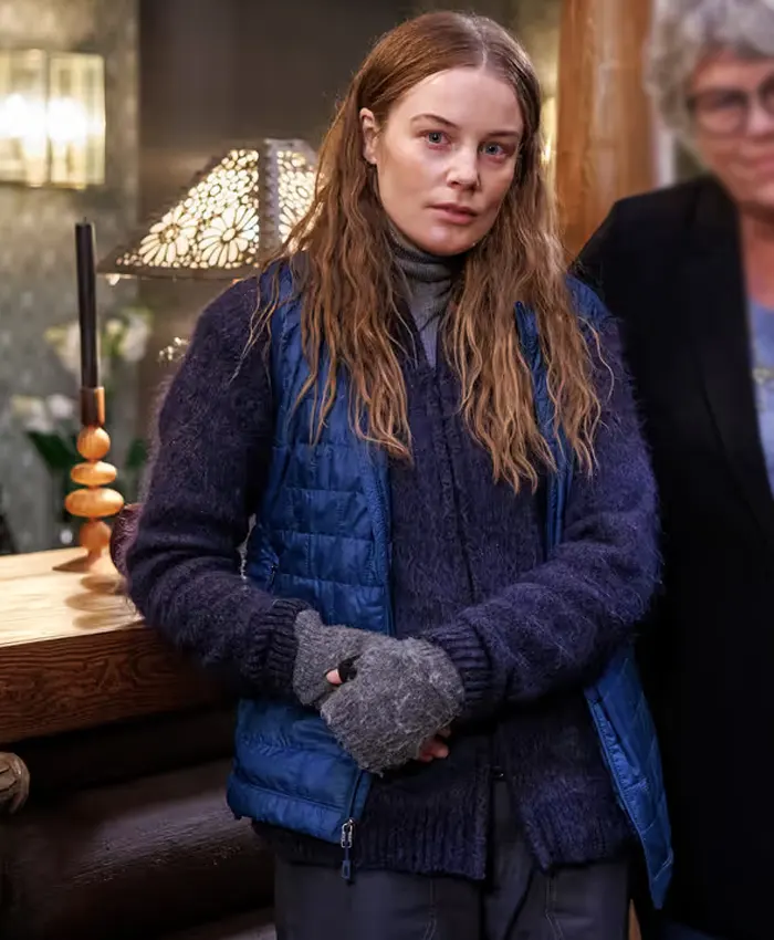 Ida Engvoll TV-Series Blindspår 2025 Hanne Wilhelmsen Blue Quilted Vest