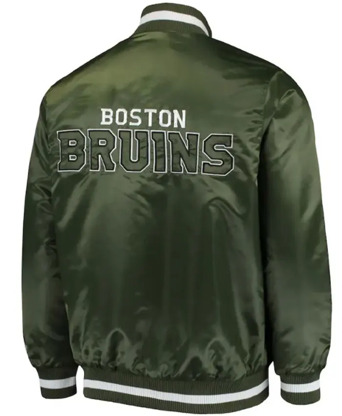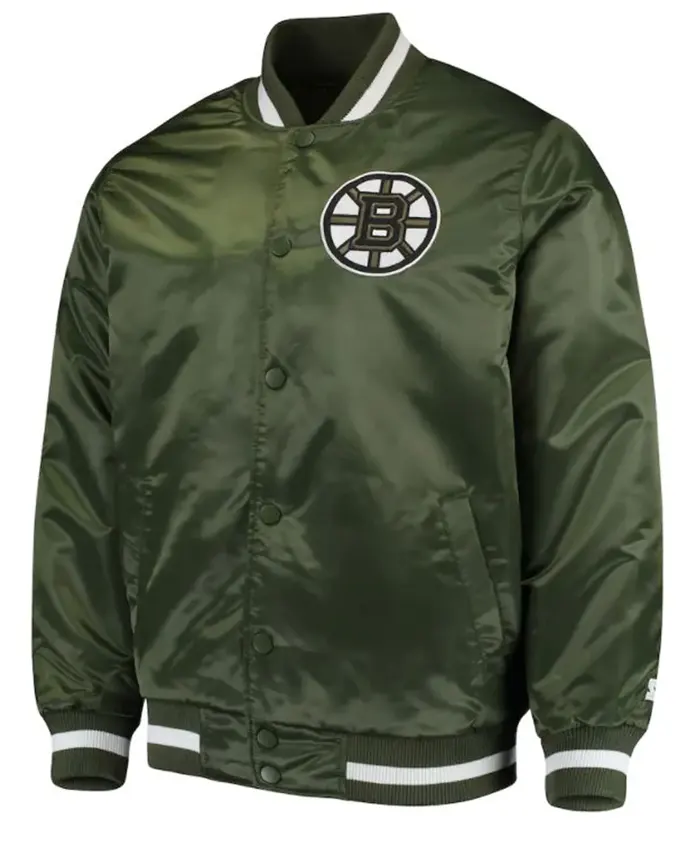Boston Bruins Starter Green Satin Varsity Bomber Jacket