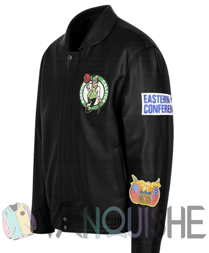 Men’s Boston Celtics Black Full-Snap Leather Jacket For Sale