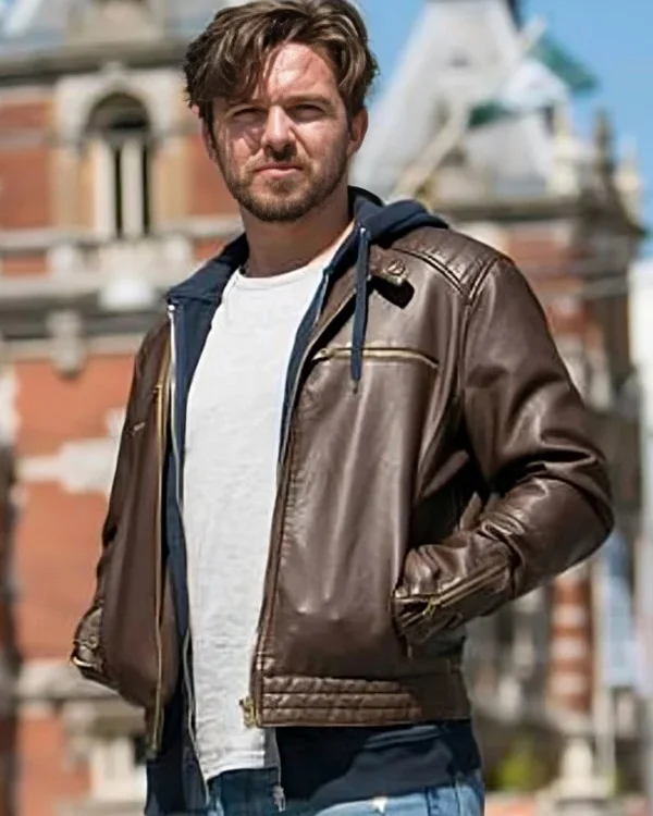 Luke Allen-Gale TV Series Van der Valk Brad de Vries Brown Leather Jacket