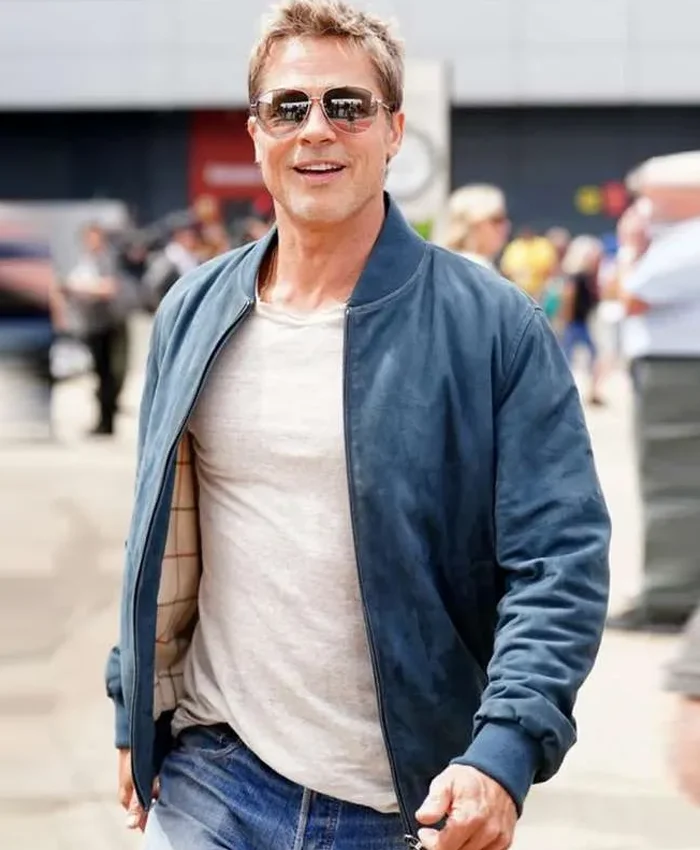 Brad Pitt Movie Formula 1 Sonny Hayes Blue Bomber Suede Leather Jacket