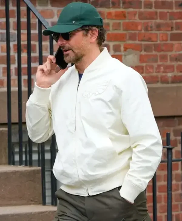 Celebrity Bradley Cooper 2024 White Track Bomber Jacket