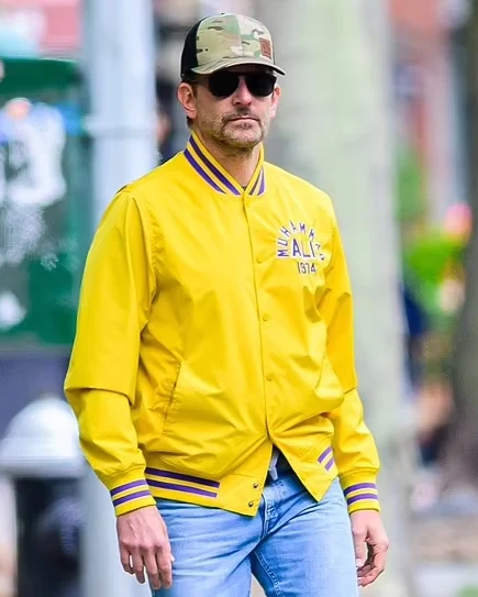 Bradley Cooper Muhammad Ali 1974 Satin Yellow Varsity Jacket On Sale
