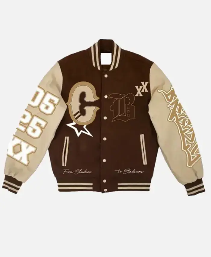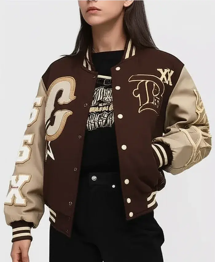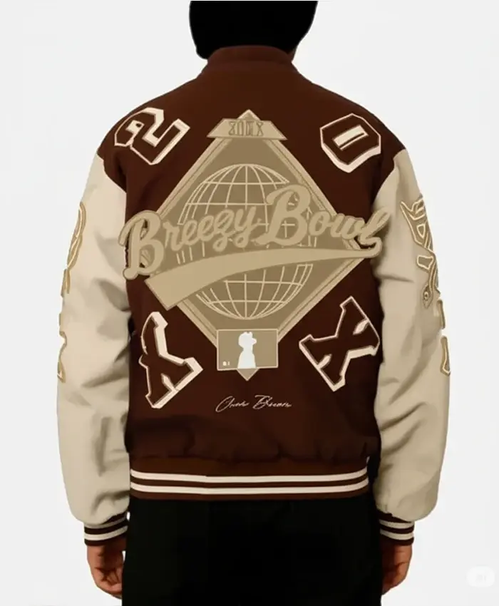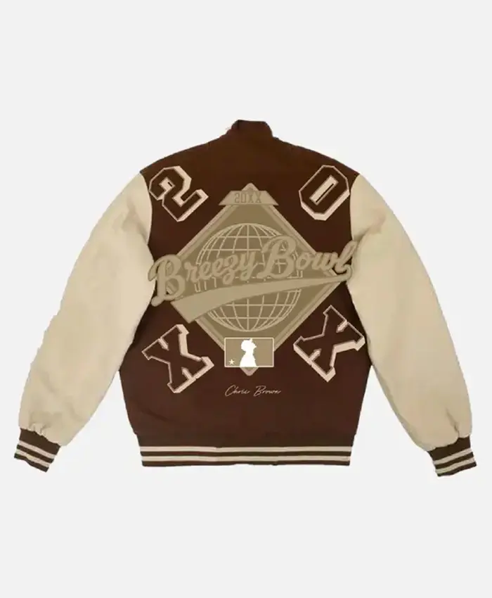 Breezy Bowl XX Brown And Beige Letterman Varsity Jacket On Sale For Men and Women