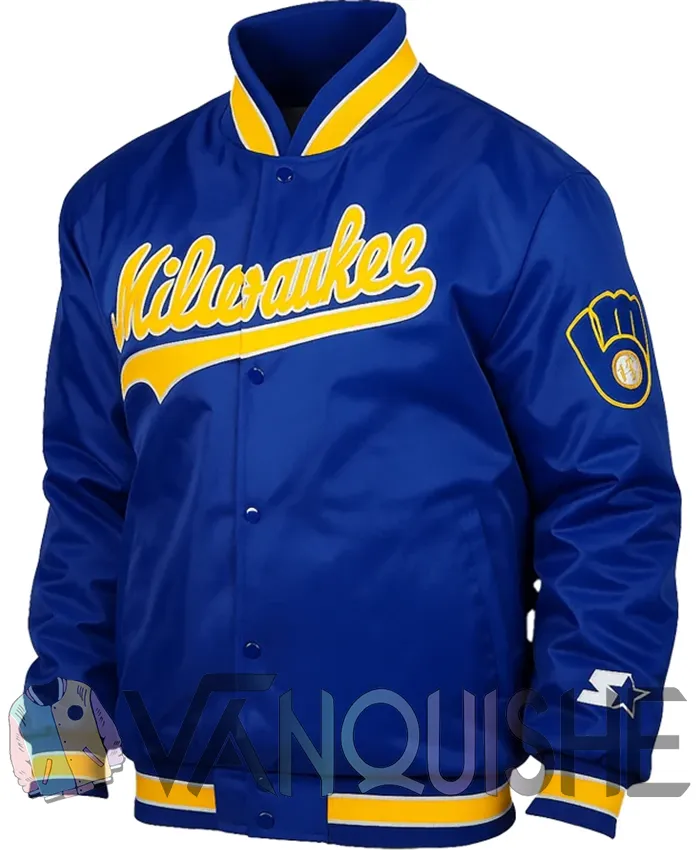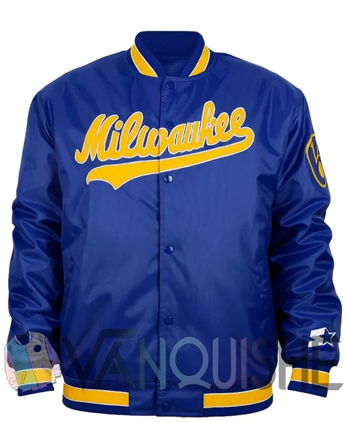 Be the first to review “Brewers Blue Satin Full Snap Bomber Jacket” Cancel reply