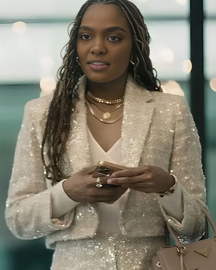 Shop Morgan Brewster’s Millions: Christmas China Anne McClain White Sequin Blazer Coat