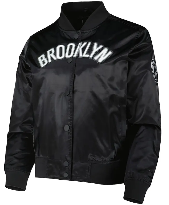 Brooklyn Nets Satin Black Bomber Jacket on sale For Mens and Womens