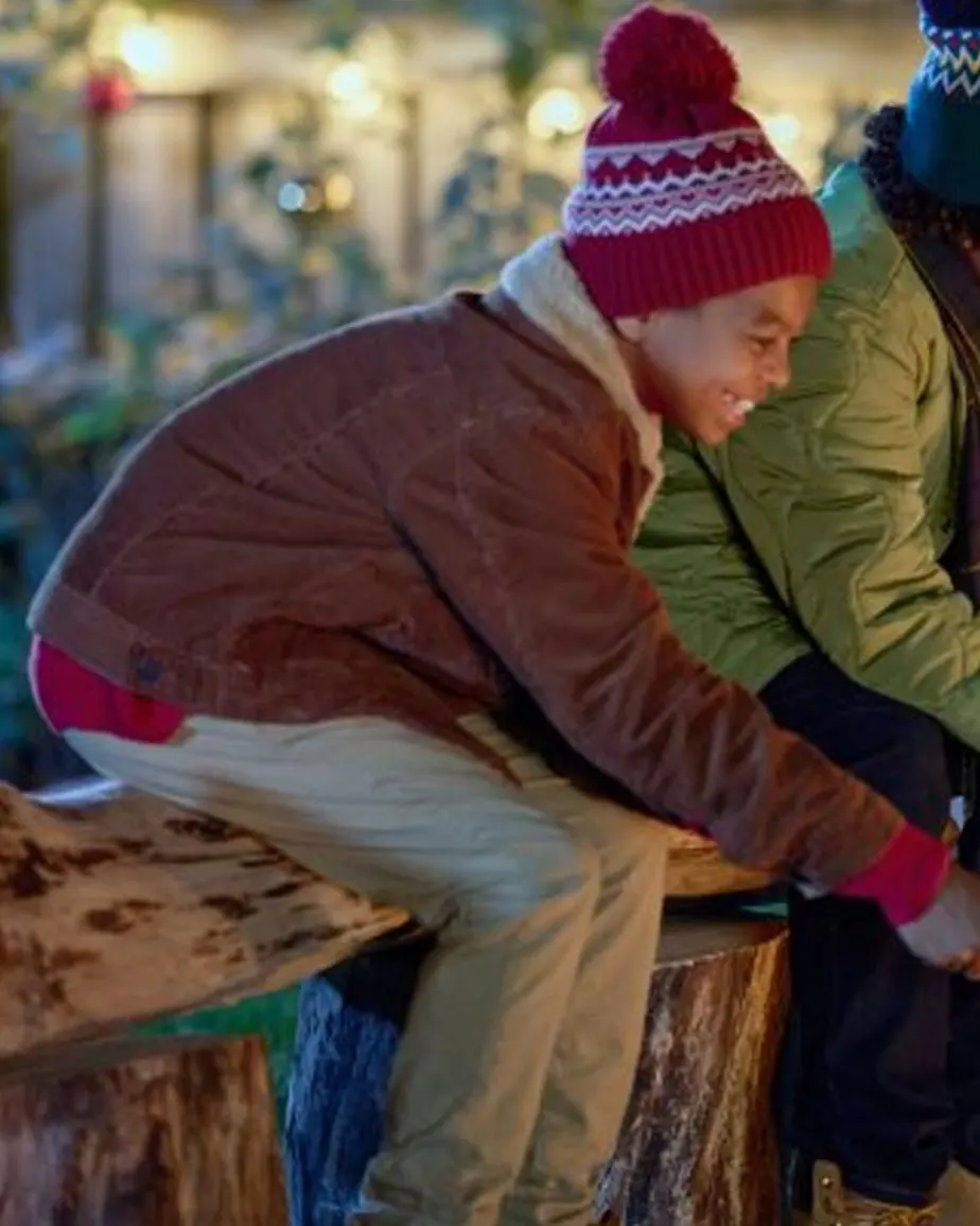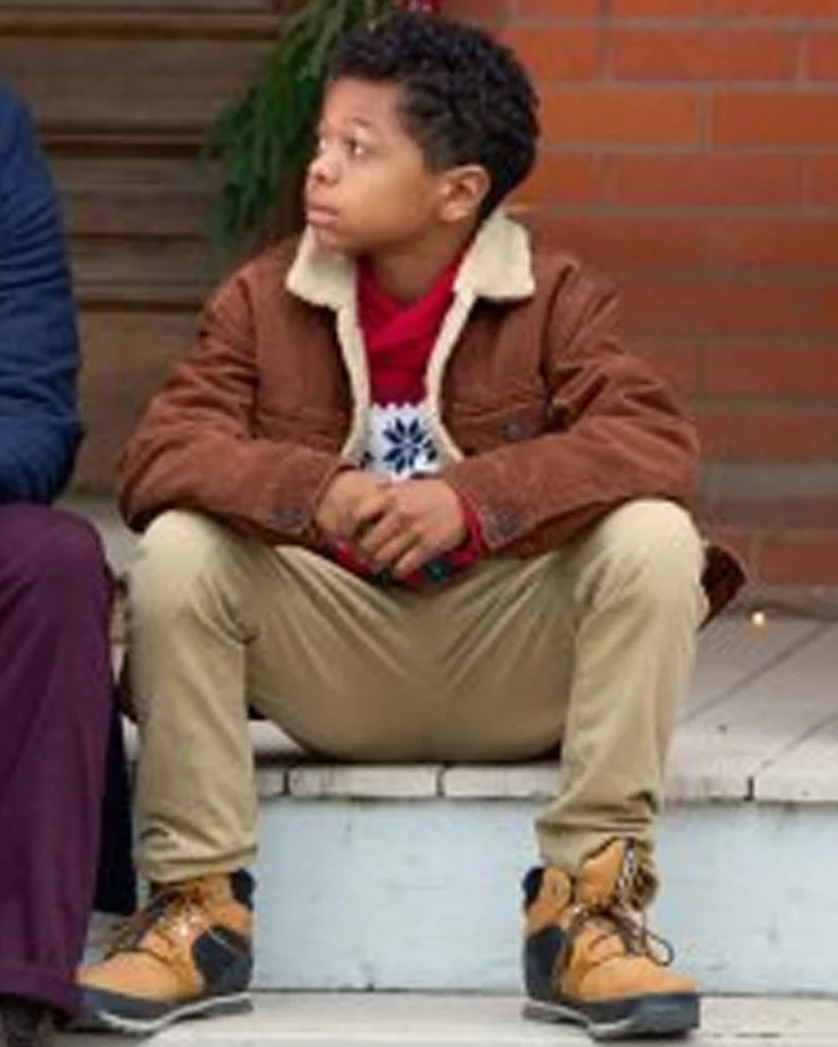 Jayd Deroché Movie Christmas with a Kiss Bryan Shearling Brown Jacket