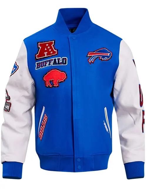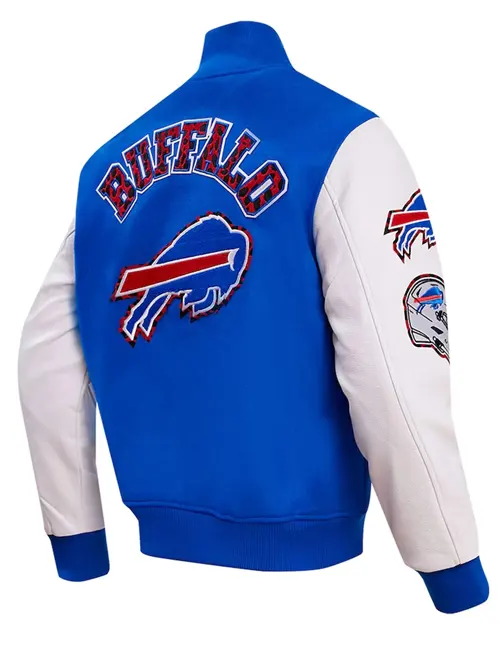 Buffalo Bills Animal Print Blue and White Varsity Bomber Jacket