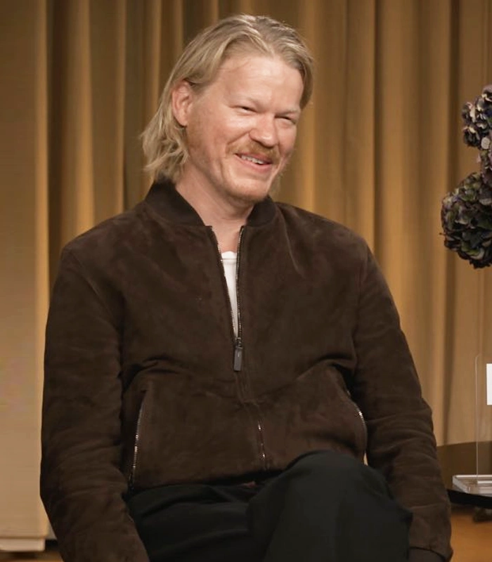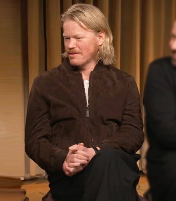 Jesse Plemons Movie Bugonia 2025 Teddy Brown Suede Bomber Leather Jacket