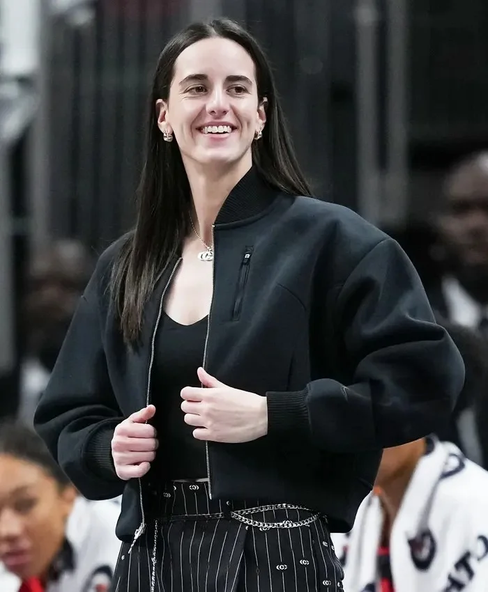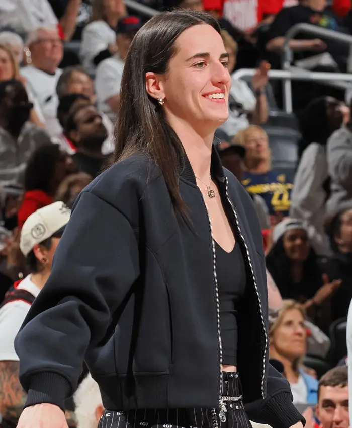 Caitlin Clark Indiana Fever 2025 Black Cropped Bomber Jacket