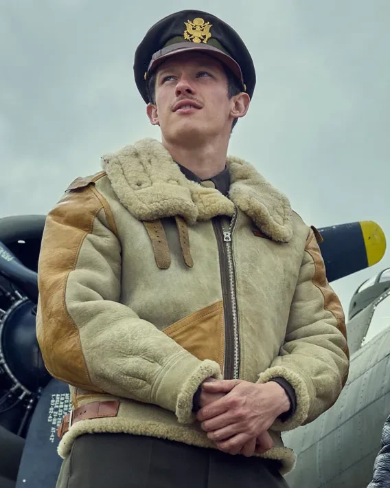 Looking to add it to your collection? You’re in luck! Wilson Jackets offers a Masters of the Air 2024 Callum Turner Leather Jacket, designed to recreate the one in the series.