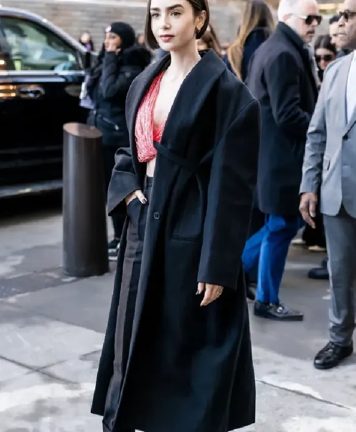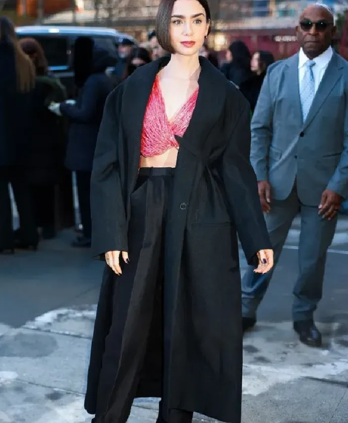 Lily Collins Calvin Klein Fashion Show 2026 Black Wool Long For Women