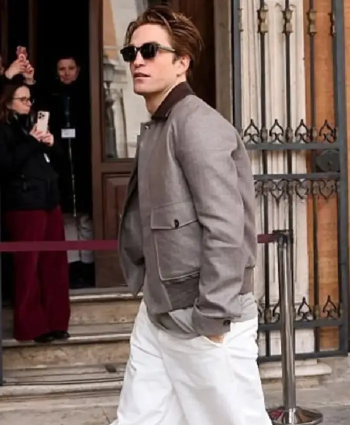 Robert Pattinson Campidoglio 2026 Grey Bomber Jacket On Sale For Men
