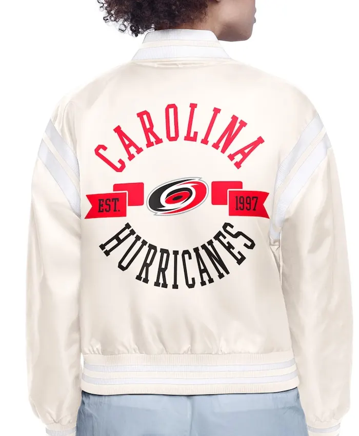 Be the first to review “Carolina Hurricanes White Satin Bomber Jacket” Cancel reply