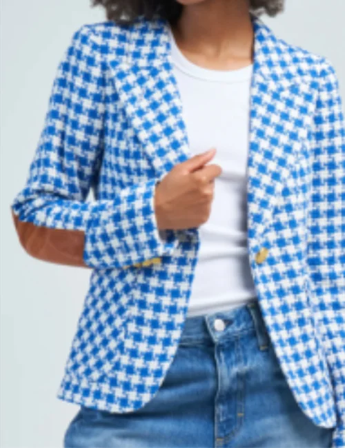 This Blue Houndstooth Blazer isn’t just fashion, it’s a feeling. It’s putting on confidence when you’re second-guessing yourself. It’s adding a bit of color to a gray day. It’s showing up to school, work, or just life, feeling like you have something to say without even speaking.