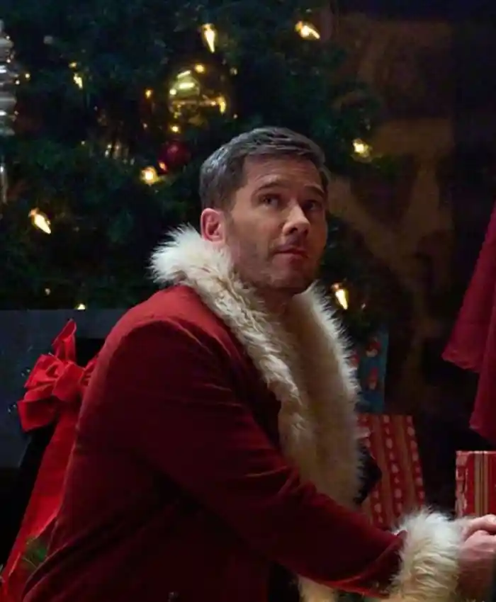 Catch Me If You Claus 2023 Luke Macfarlane Santa Coat – Festive Wool-Blend Outerwear