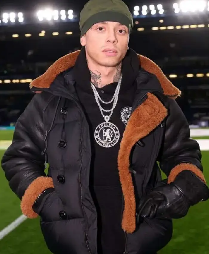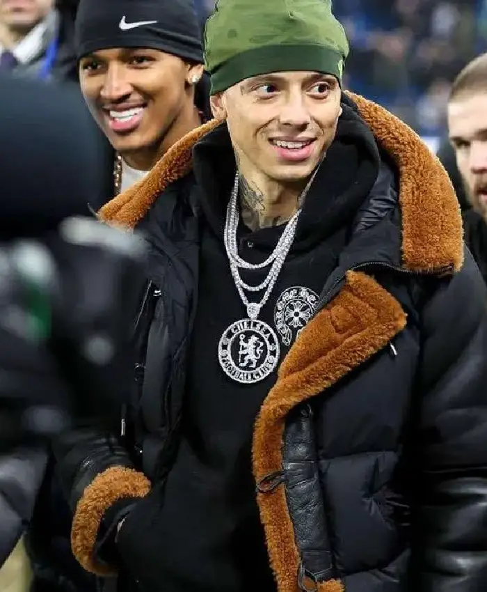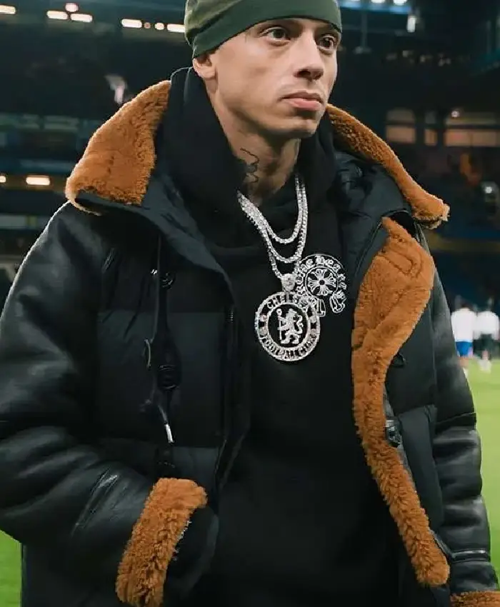 British Rapper Central Cee Premier League Black Shearling Leather Jacket For Men