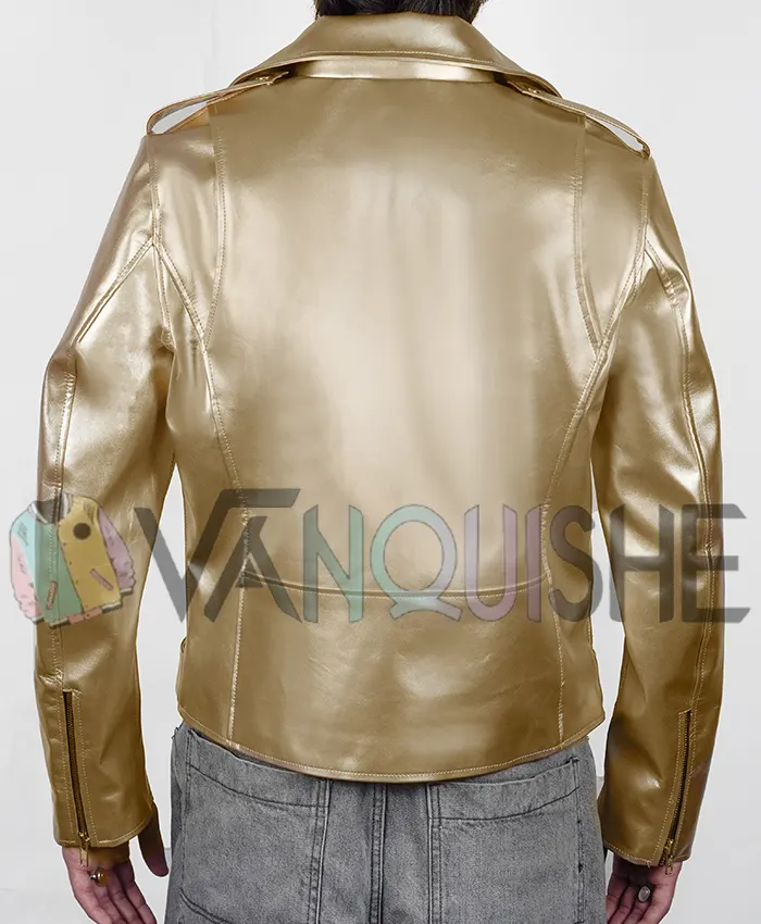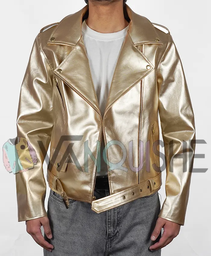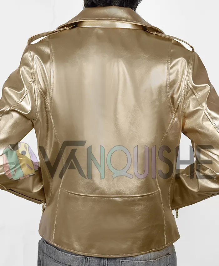 Shop Now Cheryl Golden Metallic Leather Biker Jacket For Women
