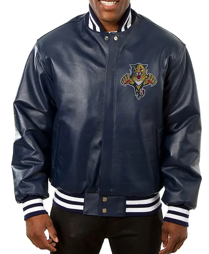 Shop Men and Women Chesley Florida Panthers Navy Varsity Leather Jacket