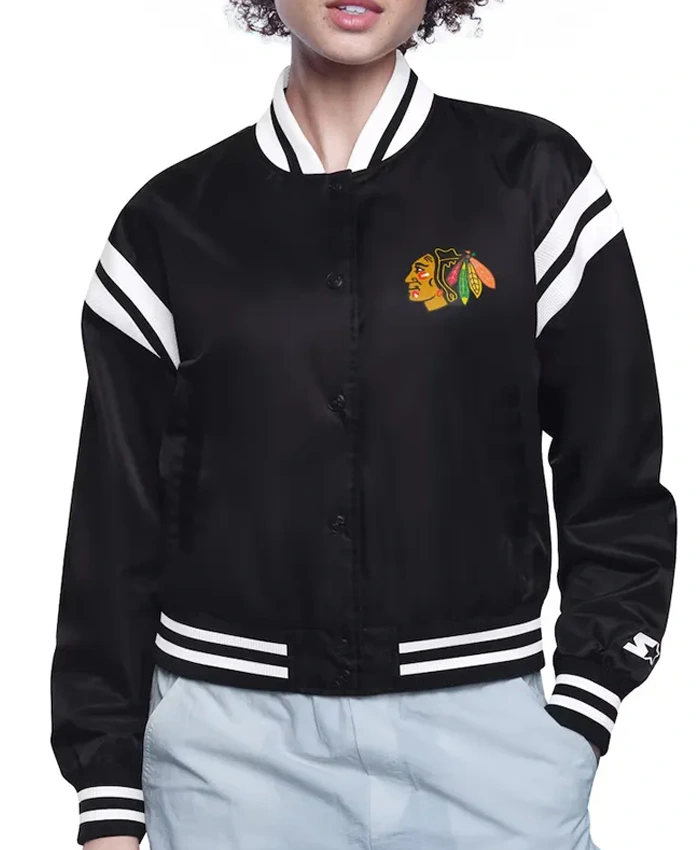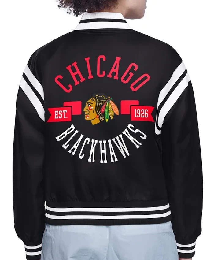 Chicago Blackhawks Printed Logo Satin Varsity Jacket For Men and Women