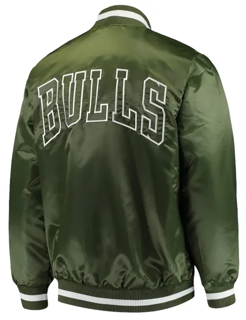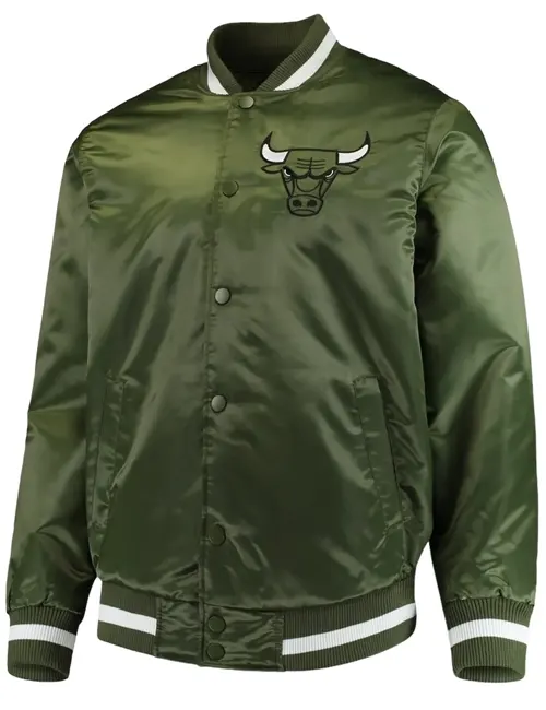 Fans of the legendary basketball team will love this chic, unisex Chicago Bulls Forest Green Jacket. This jacket, which is made of premium satin, has a glossy, smooth finish that looks fantastic and is strong enough to be worn every day. Whether you’re at a game or just hanging out with friends, it’s perfect for all-day use because of its cozy viscose lining, which keeps you from being irritated.
