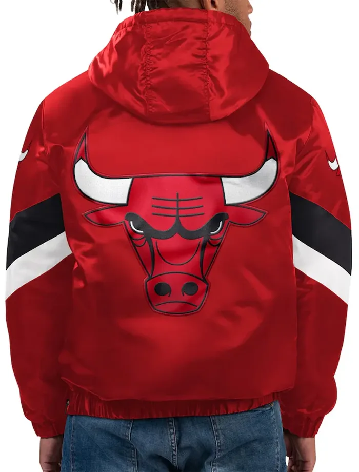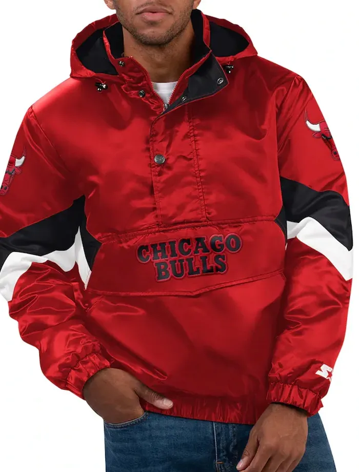 Buy Chicago Bulls Red Satin Pull Over Hooded Jacket on Sale