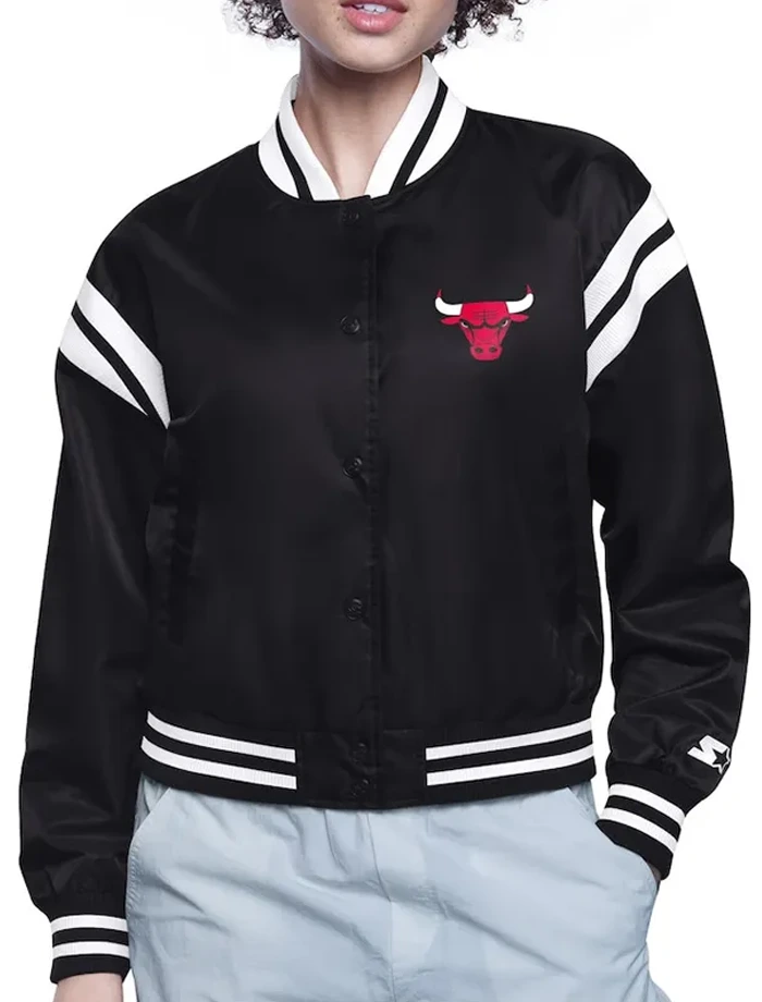 Chicago Bulls Satin Bomber Full Snap Jacket