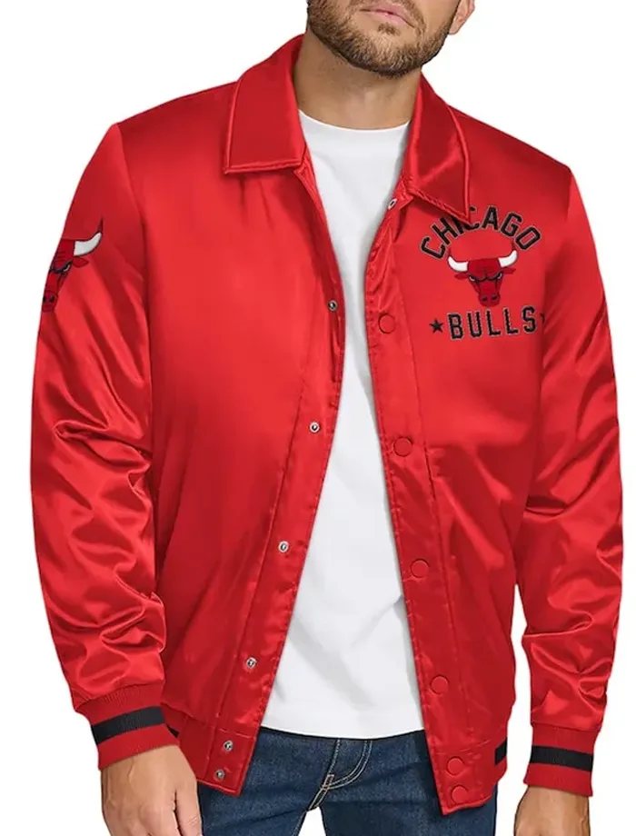 Buy Chicago Bulls Satin Red Bomber Full Snap Jacket on Sale