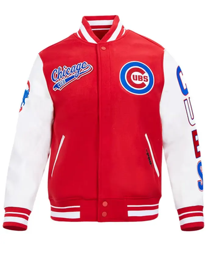 Chicago Cubs Red And White Wool Varsity Jacket For Men and Women