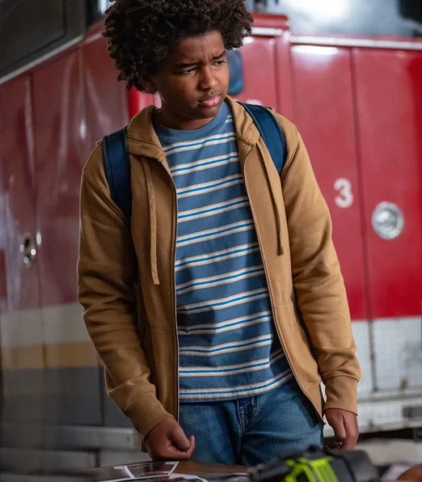 Achieving a sophisticated look similar to that of a hero hunter requires minimal effort; you can simply pair it with tailored pants or jeans and layer the hoodie over a plain t-shirt or a simple shirt. The classic hoodie consistently provides an admirable appearance due to its enduring design and the soft, subtle, warm brown color. You can get the feel of reliability with this outerwear. Purchase this movie-inspired hoodie today! From the TV Series Chicago Fire 2025 Jackets and Other Outfits collection.