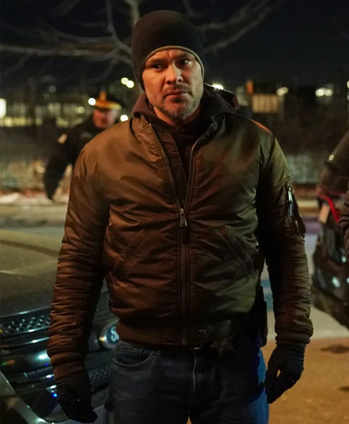 Patrick John Flueger TV-Series Chicago PD 2025 Adam Ruzek Brown Bomber Jacket