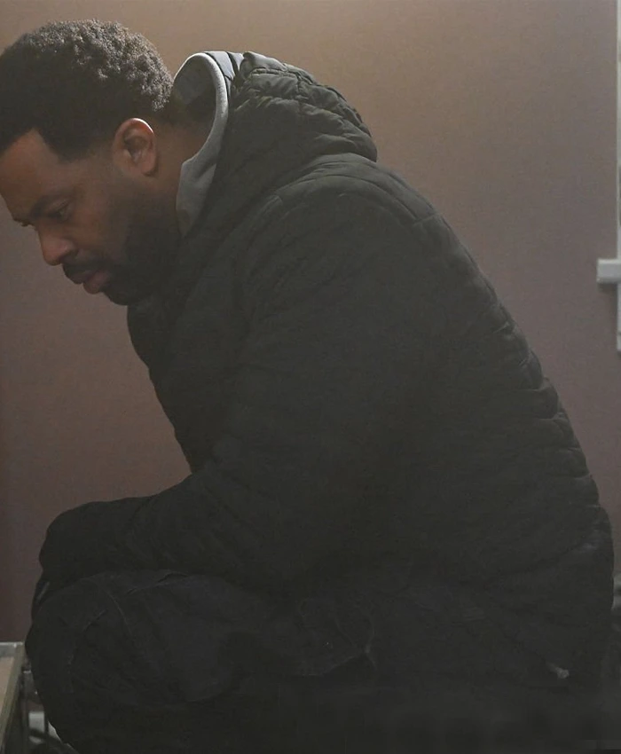 LaRoyce Hawkins TV-Series Chicago PD 2025 Kevin Atwater Black Quilted Hooded Jacket