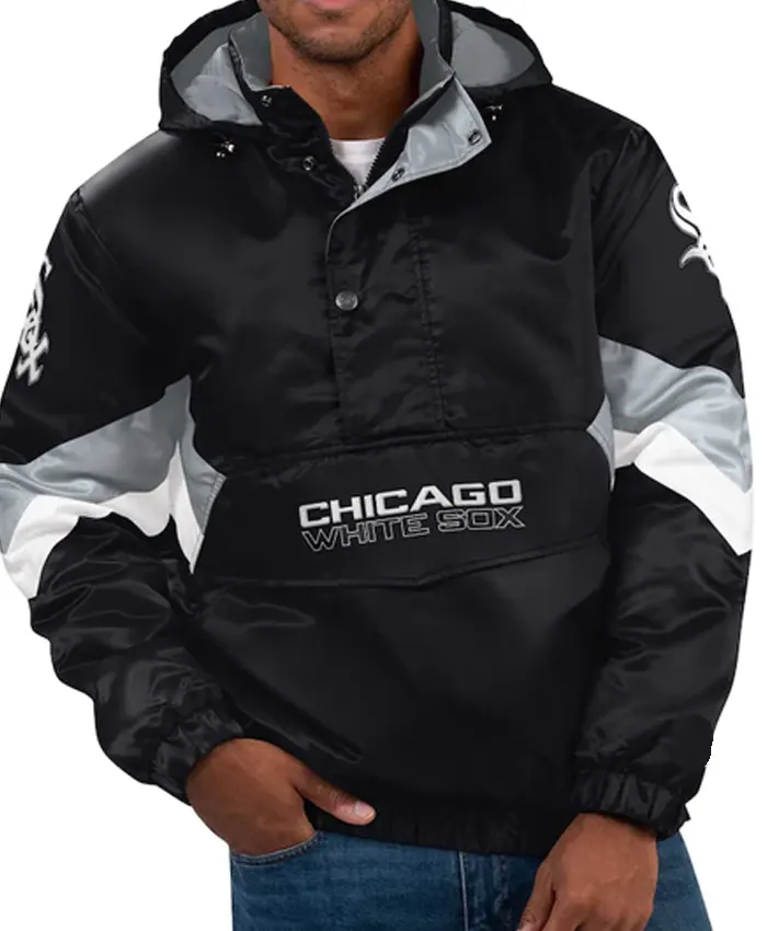 Buy Chicago White Sox Windbreaker Half-Zip Black Satin Jacket