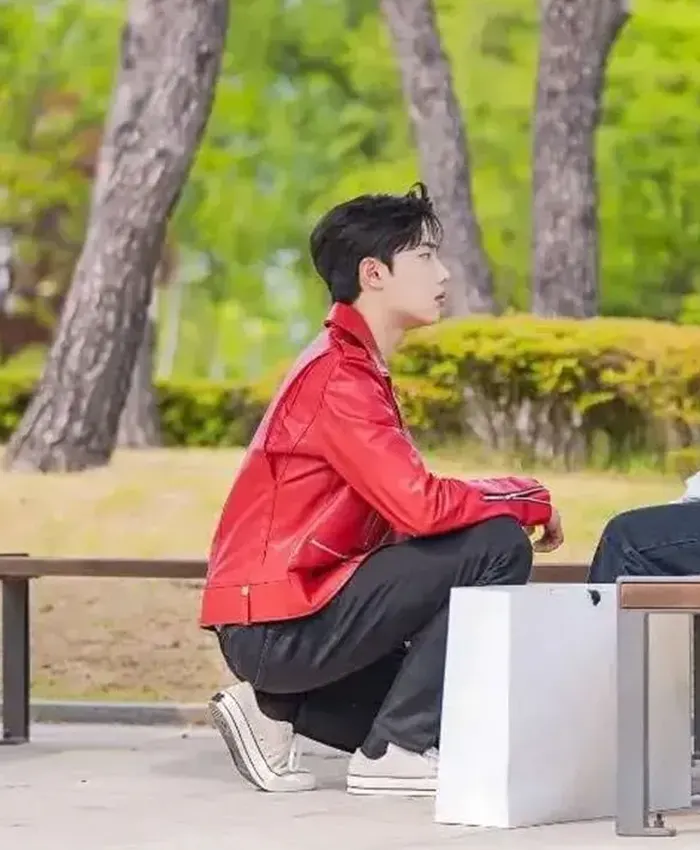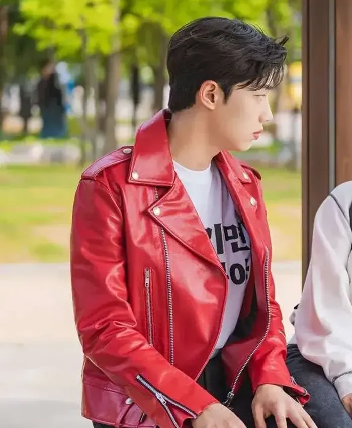Cho Jun-young Tv Series Spirit Fingers Nam Gi-jeong Red Biker Leather Jacket
